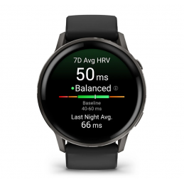 Comprehensive health monitoring including heart rate, HRV, stress, Body Battery™, respiration, SpO₂, and skin temperature